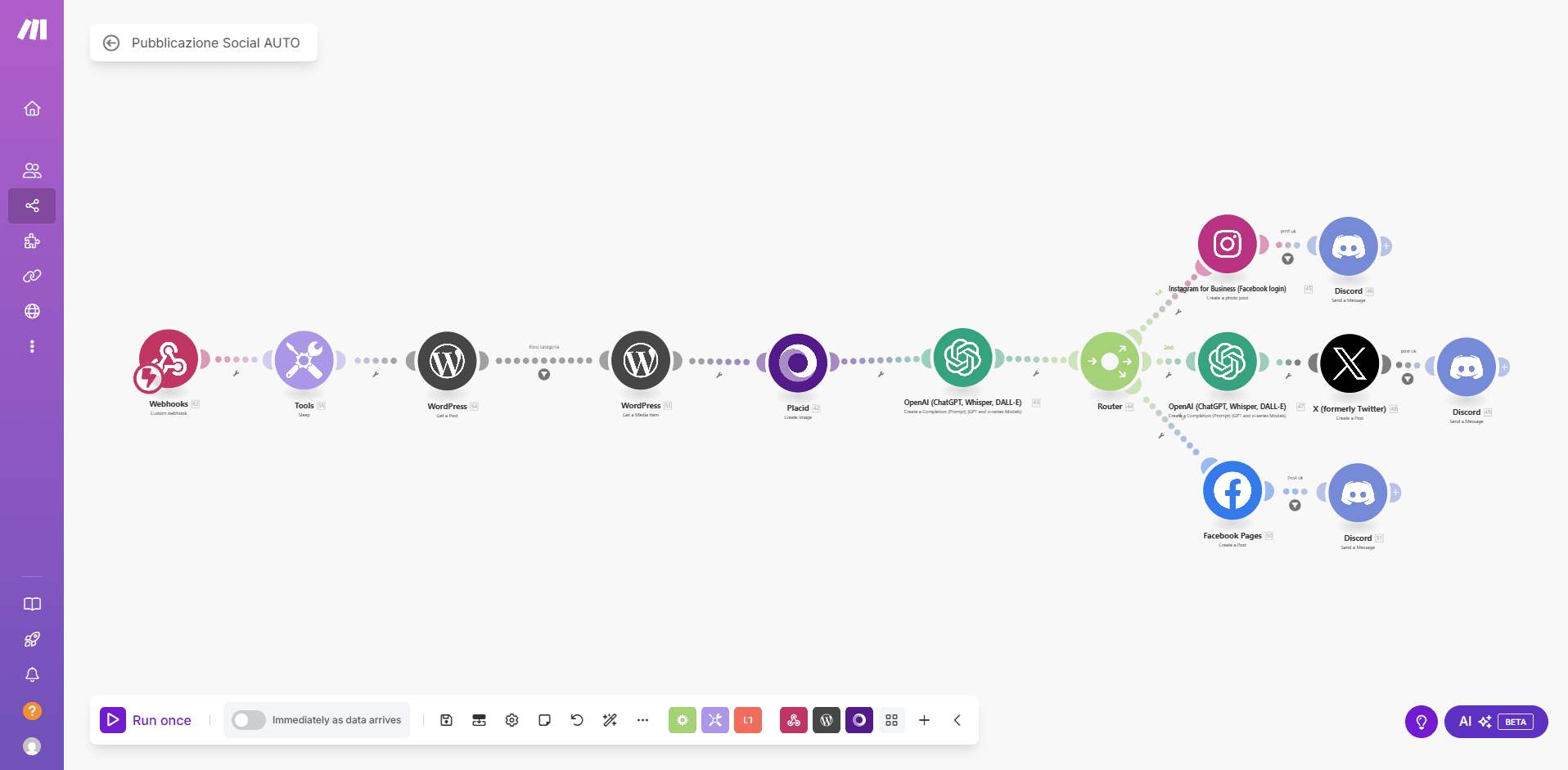This automation is the natural evolution of the AI article rewriting workflow. Once a new article is generated and saved as a draft on WordPress, this second flow activates the moment the post is published — automatically turning that article into a complete social media post with visual, caption, and hashtags, ready to be shared across all major platforms.