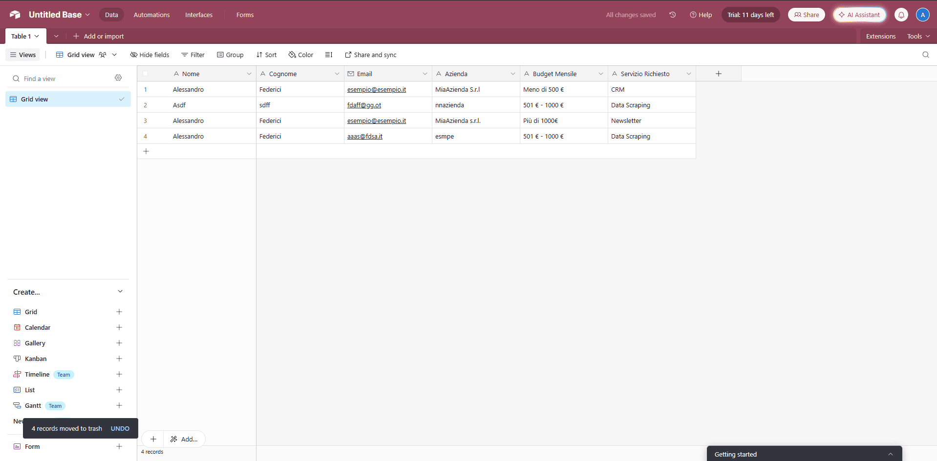 All leads are stored and organized in Airtable, ready for follow-up or CRM syncing.Smart notifications based on budget