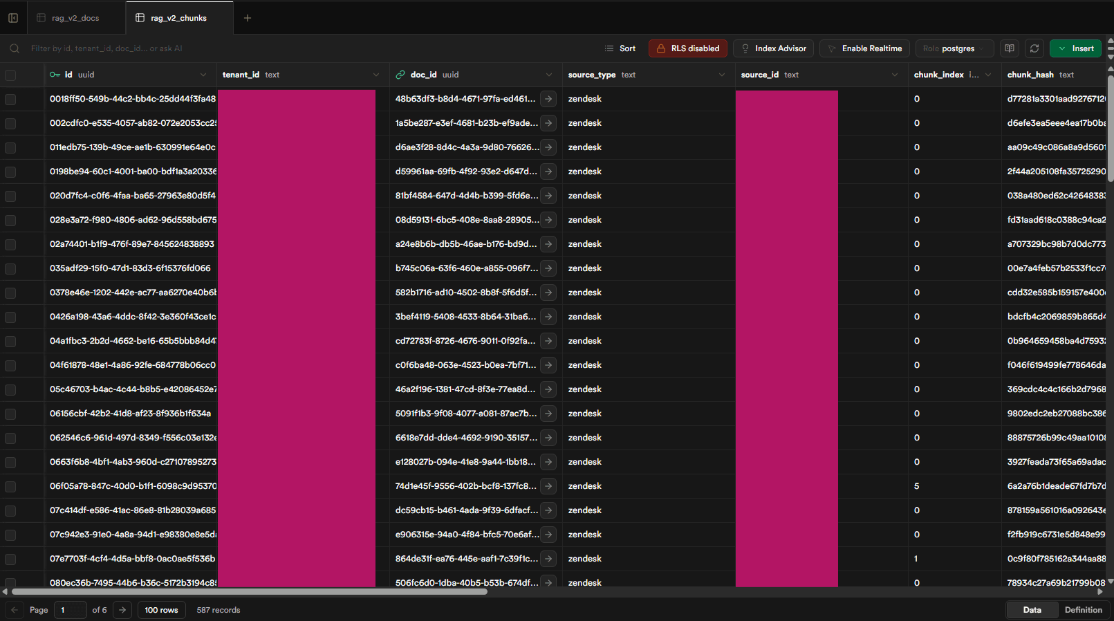 All vector searches are executed through custom PostgreSQL RPC functions, enabling efficient similarity search directly inside the database.