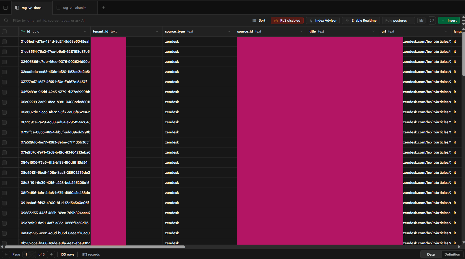 The system automatically ingests articles from Zendesk Help Center, processes the content through an AI embedding pipeline, and stores structured data inside Supabase PostgreSQL with pgvector vector search.