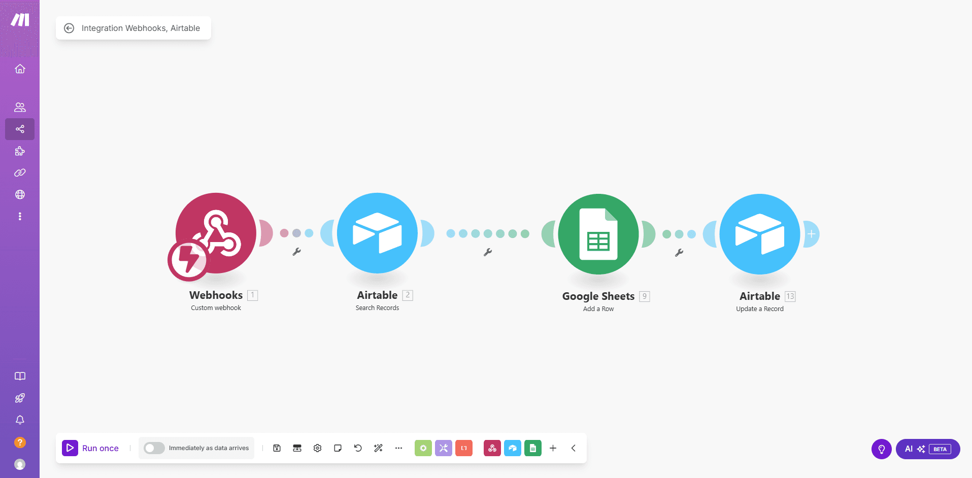 This automation shows how even complex business tools can be simplified and deployed via Make, combining real-time data extraction, custom dashboards, and document generation — all with clean no-code logic.