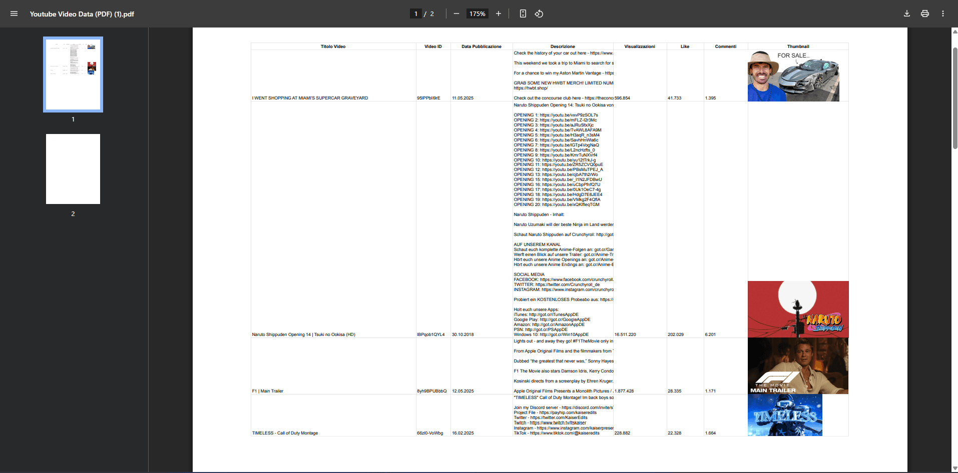 "Paste a YouTube link in Telegram and receive a structured PDF dashboard with all the video stats, without using any third-party plugin."